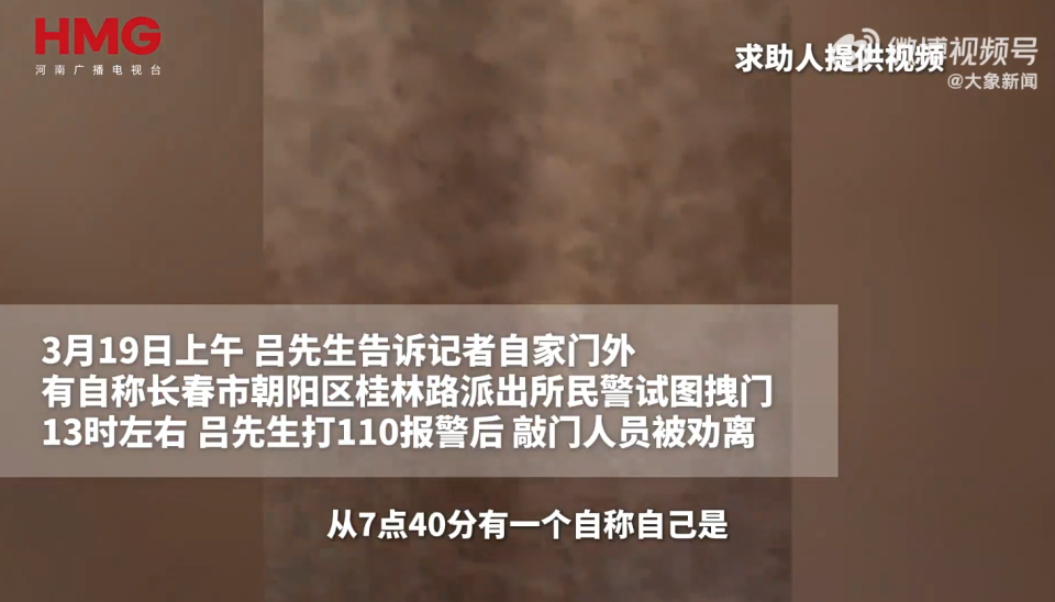 3月19日,吕先生再次求助:早上7点40分起,自称桂林路派出所民警上门敲门,他拒绝后用扫把抵门,下午1点23分,无奈报警,彩织派出所出警劝离。警方回应:“是公安局民警敲门,正常办案子没有别门。”